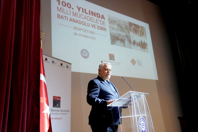“Millî Mücadele’de Batı Anadolu ve İzmir Sempozyumu” başlığıyla 28-30 Ekim tarihleri arasında Ege Üniversitesi’nde gerçekleştirilen sempozyumda Batı Anadolu ve İzmir özelinde millî mücadeleye bakıldı. TÜBA Başkanı Prof. Dr. Muzaffer Şeker, Rektör Yardımcımız Prof. Dr. Fahameddin Başar ve Ege Üniversitesi Rektörü Prof. Dr. Necdet Budak’ın açılış konuşmalarıyla başlayan sempozyum, İstanbul Üniversitesi öğretim üyesi Prof. Dr. Cezmi Eraslan’ın “Hürriyet ve İstiklal Fikrinin Zaferi Olarak Millî Mücadele” başlıklı açılış konferansıyla devam etti.